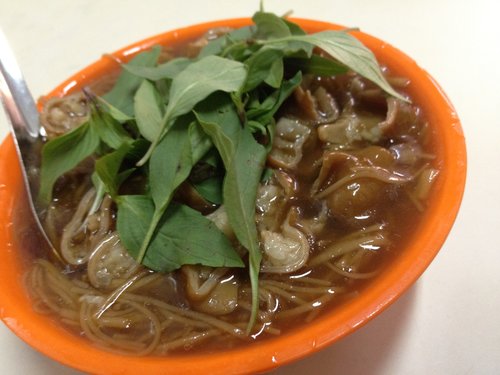 大腸軟嫩又入味,一邊咀嚼大腸一邊品嘗湯頭跟九層塔香